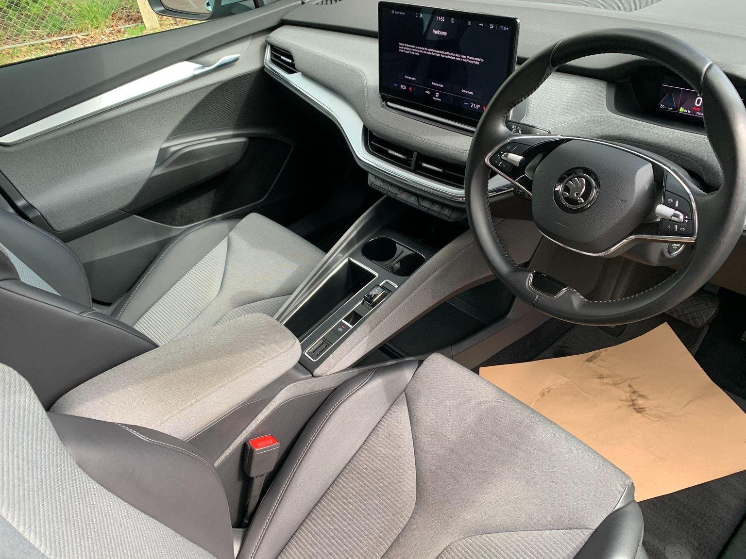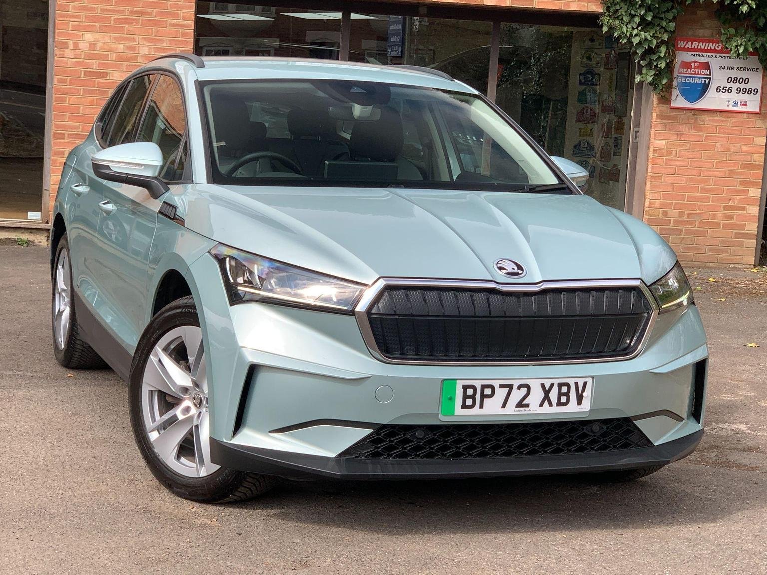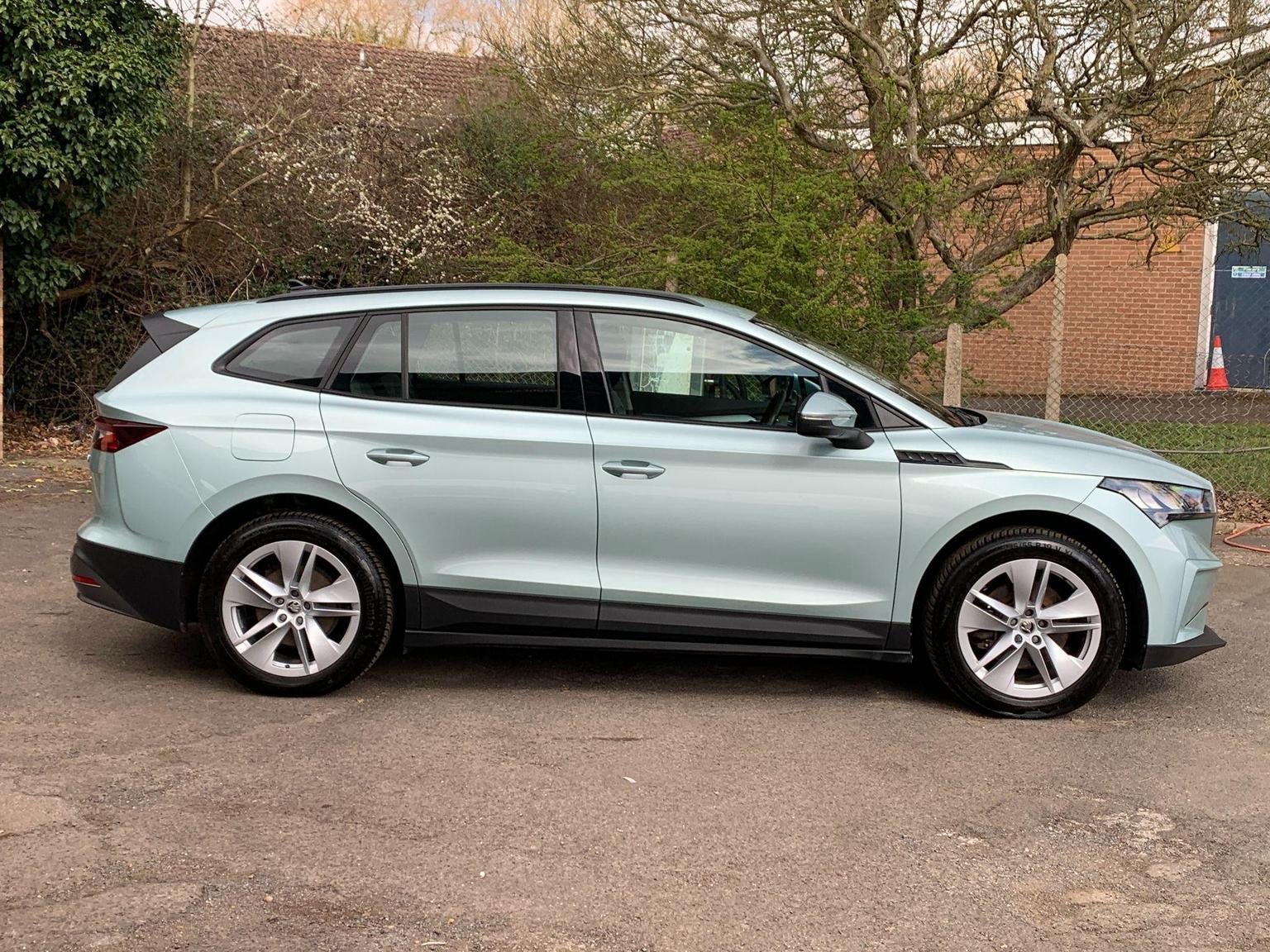 The 2023 Skoda Enyaq 60 is an electric car with only one previous owner. The vehicle comes equipped with a light and rain sensor, including an auto-dimming rear-view mirror and automatic headlights. Bluetooth connectivity is included, along with Wireless Smartlink featuring Android Auto. Basic LED headlights with LED daytime running lights and headlight range control are also fitted. The Skoda Connect iV Remote Services includes air conditioning.